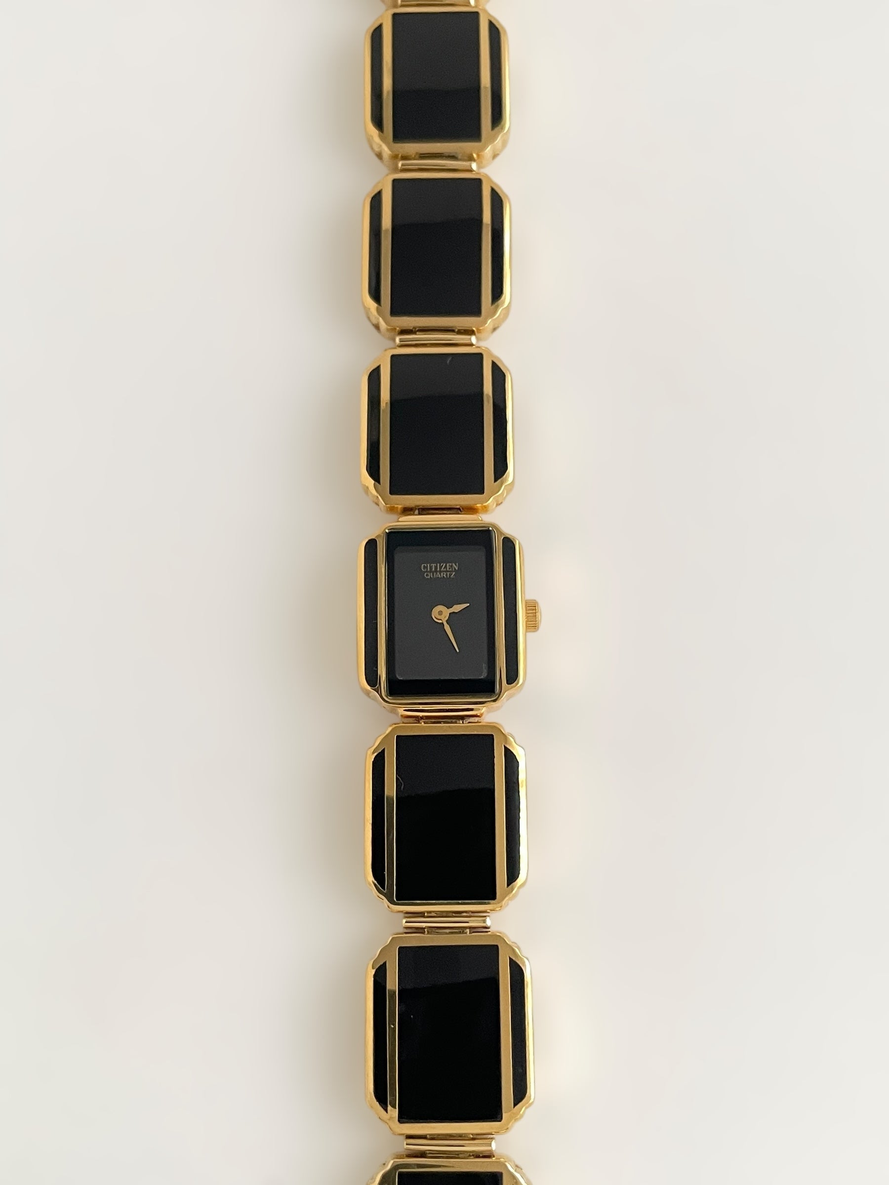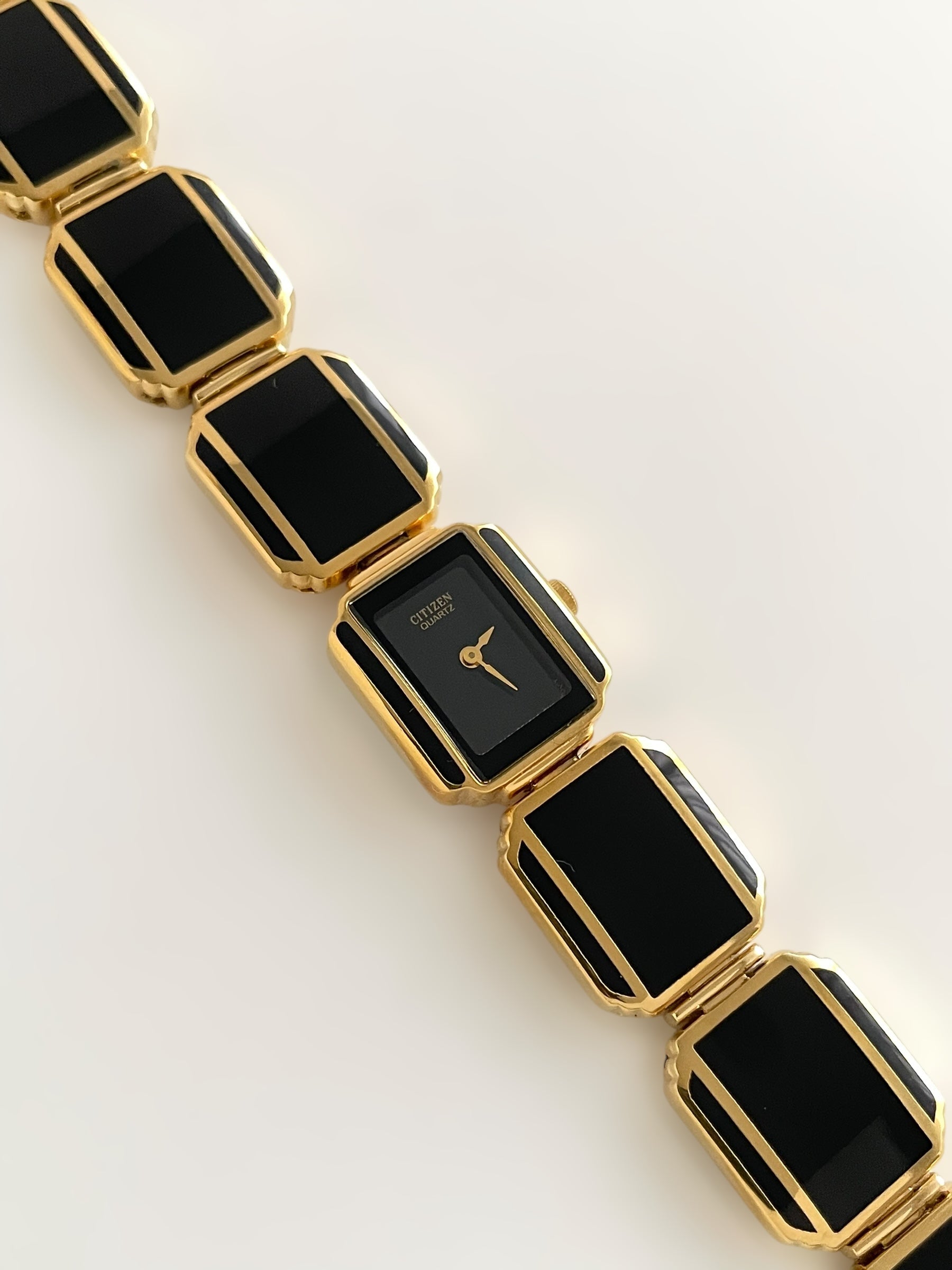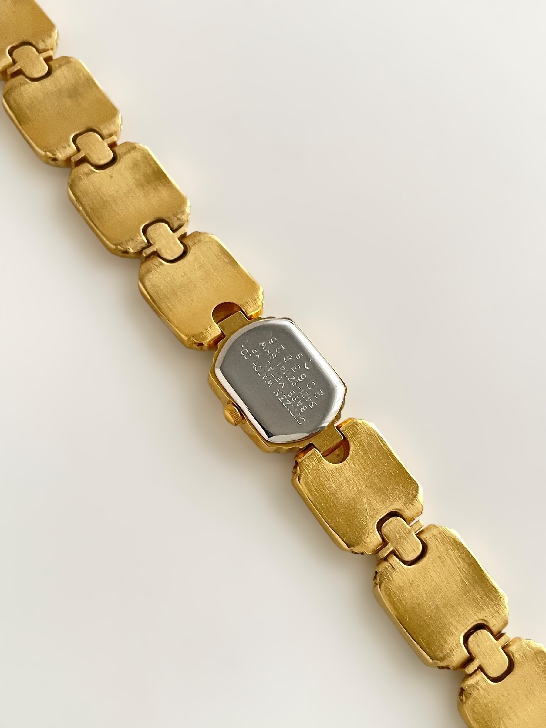 Incredible vintage and gold plated very rare Citizen watch and earring set with a gorgeous bracelet design and a petite case on the watch. Bracelet clasp closure.