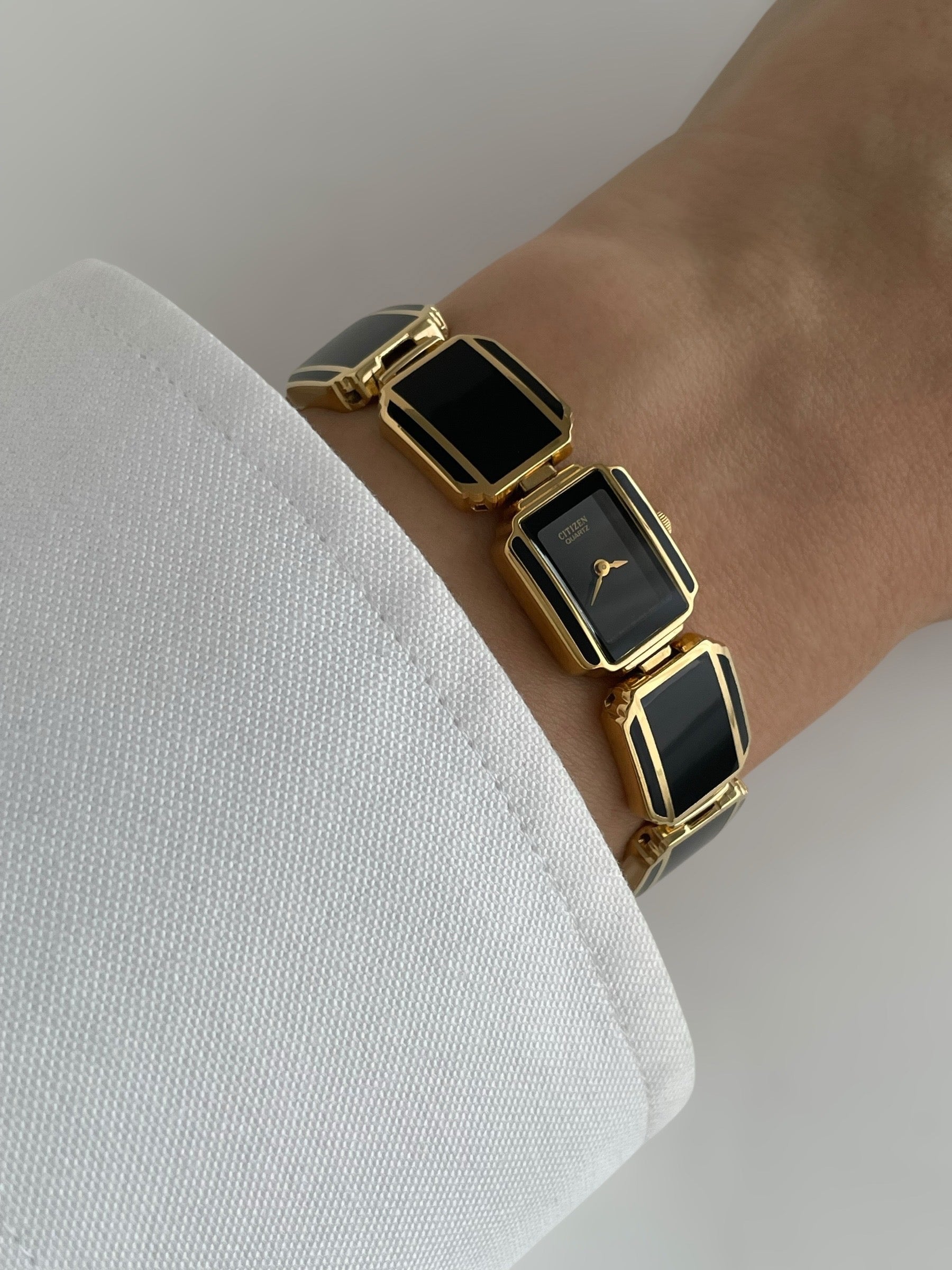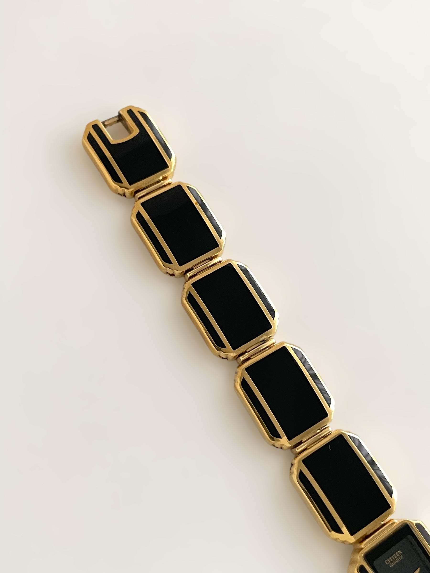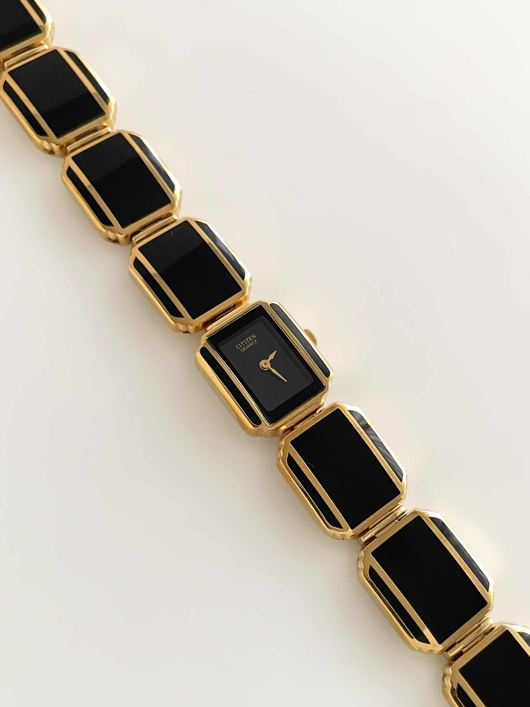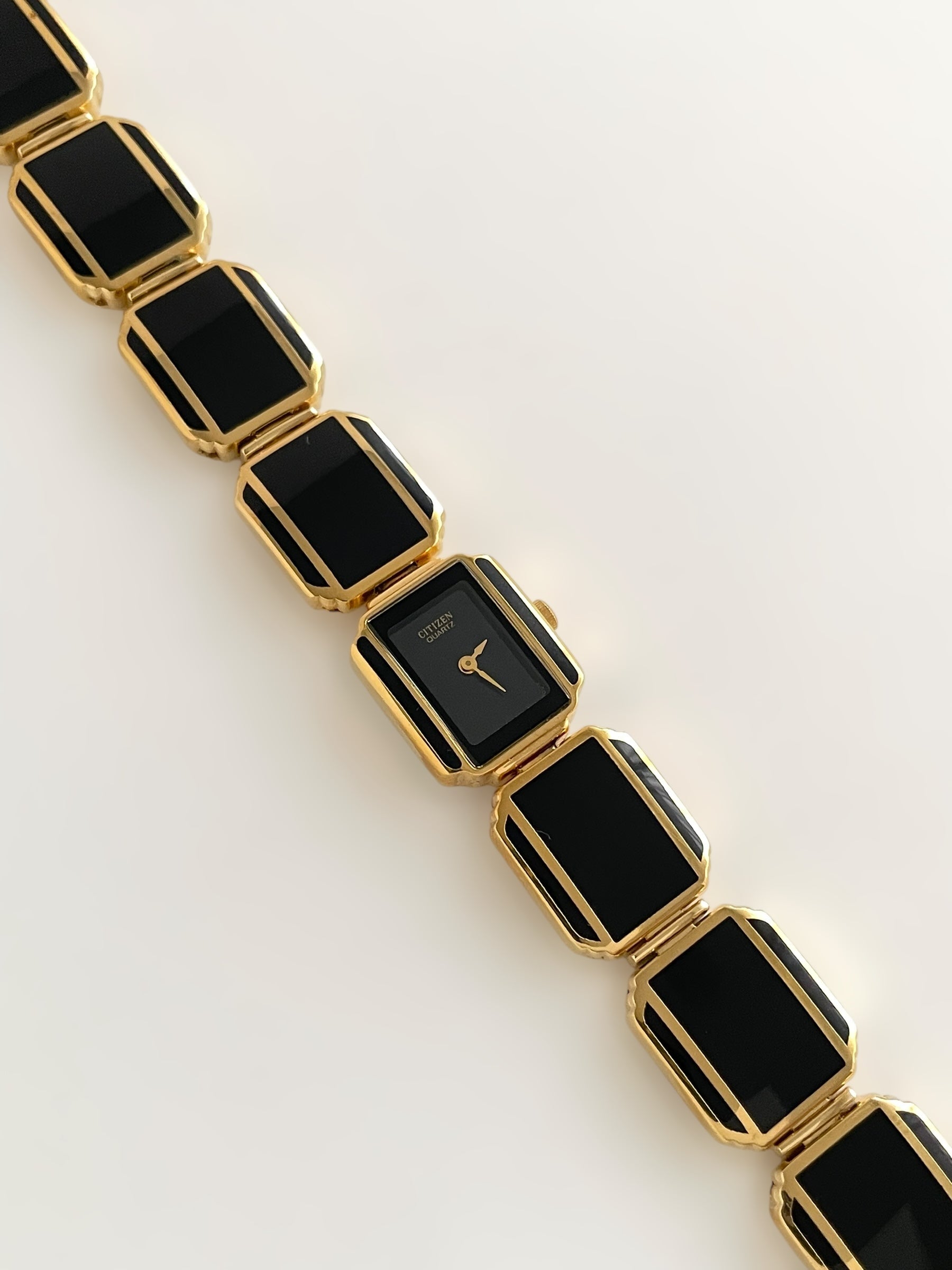 Incredible vintage and gold plated very rare Citizen watch and earring set with a gorgeous bracelet design and a petite case on the watch. Bracelet clasp closure.