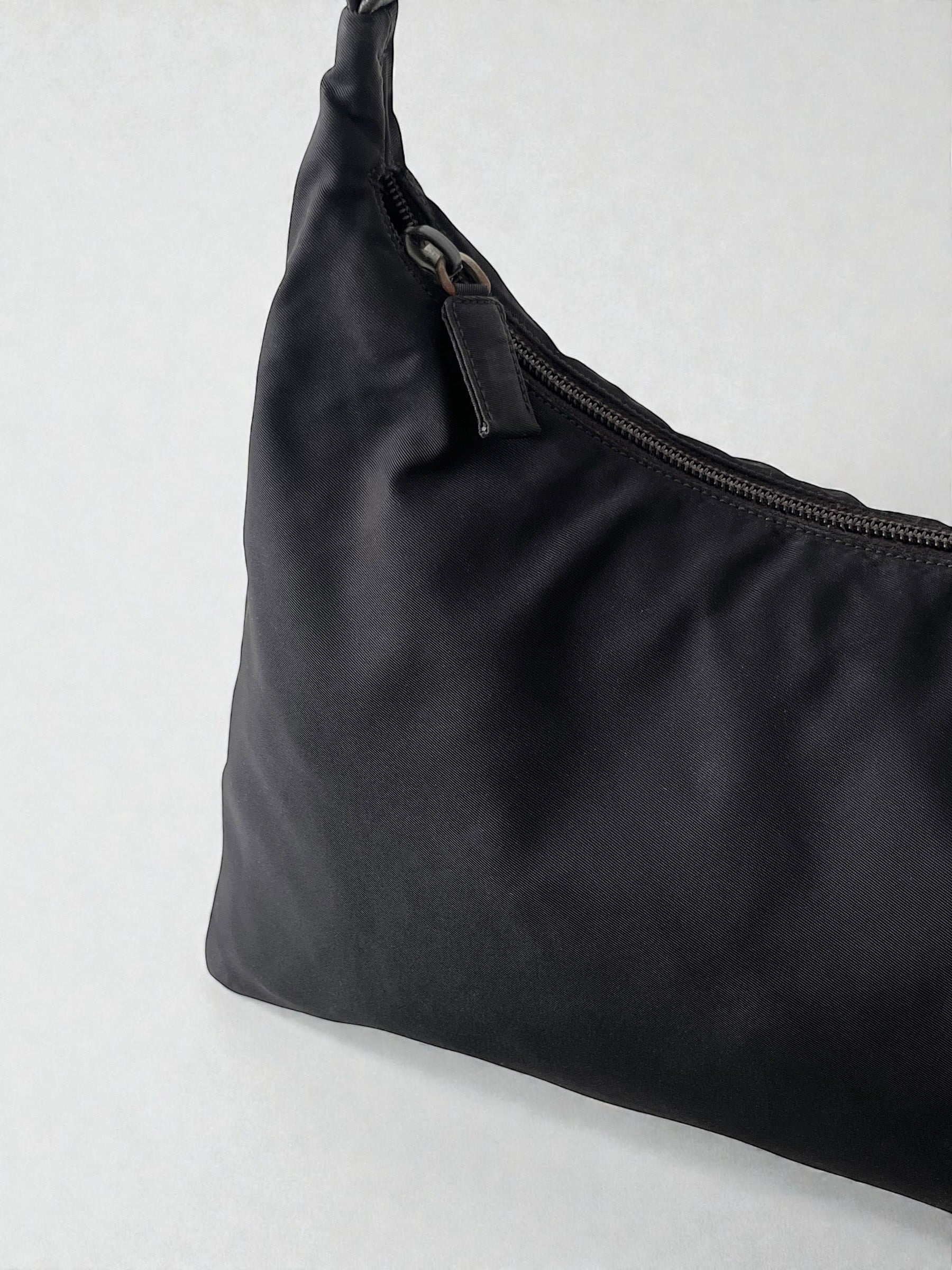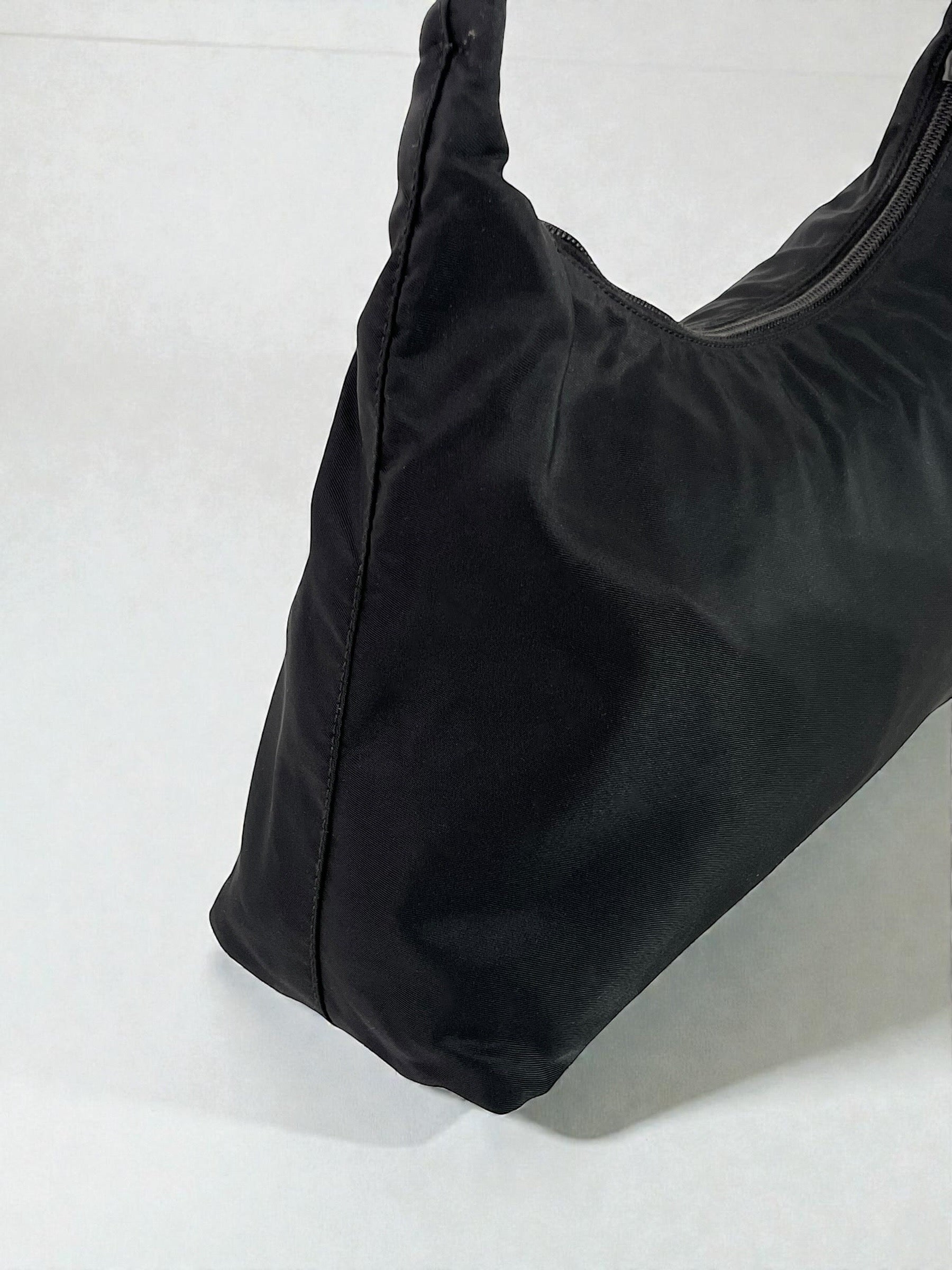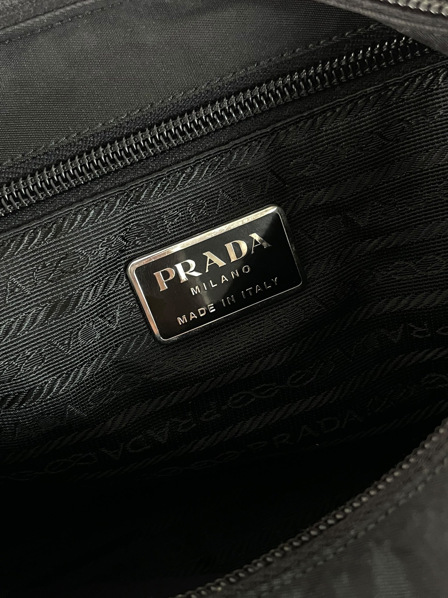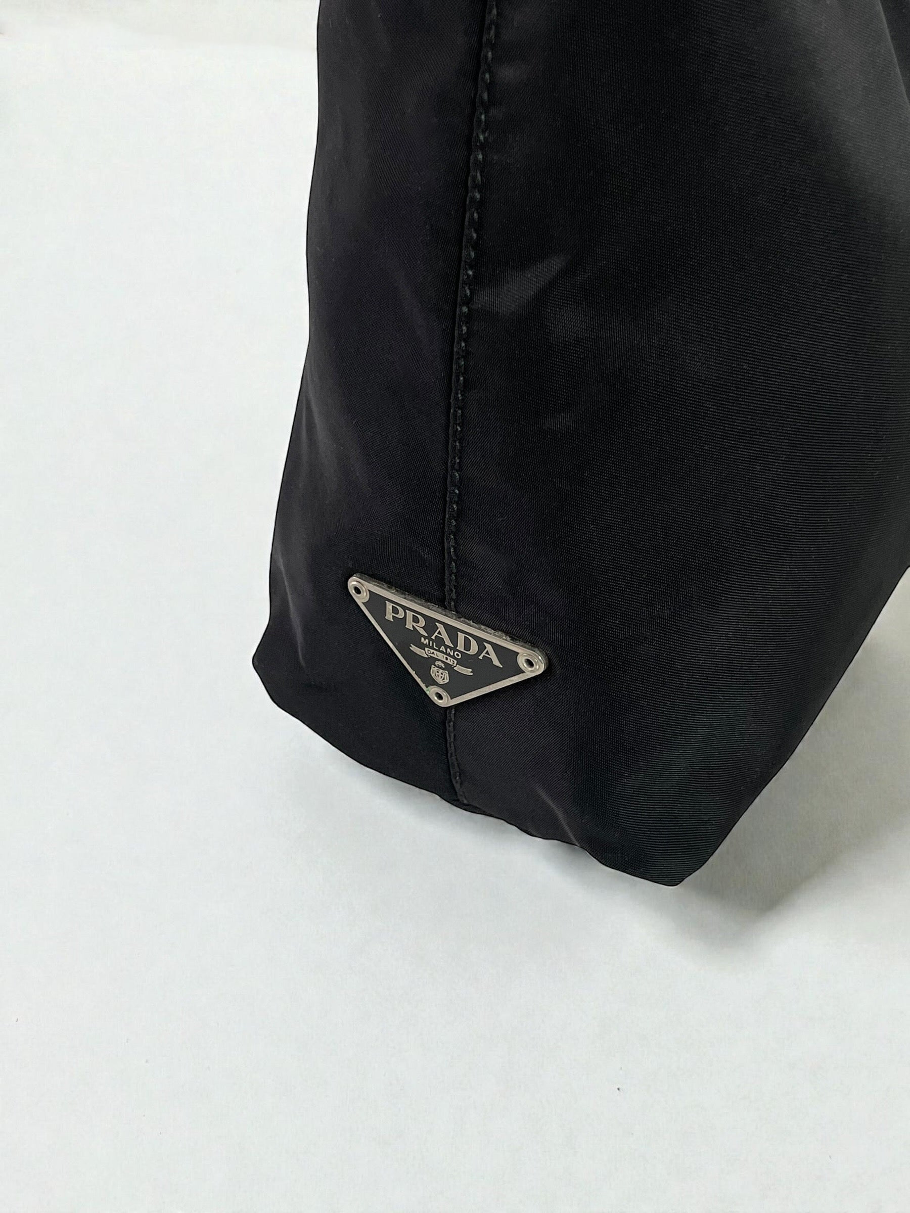 Beautiful vintage Prada nylon bag with transparent handles. Iconic brand logo on the side.